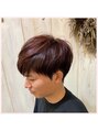 顔まわりを長めに残したマッシュショート。ハイライトに赤系のカラーでツヤ感アップサイド、バックは刈り上げてスッキリ重過ぎないスタイル。