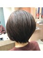 前髪長めのショートスタイル。えりあしはレザーでザグザグとさせて上はまとまりように、また、トップはボリュームがでるようにカットしました!