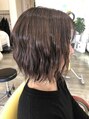 顎下ラインのボブスタイル裾を軽くしているので顎ラインが引き締まり小顔に!アイロンでウェーブヘアに♪
