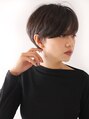 耳にかけたフレンチショートです。耳周りと襟足を切り込み、スッキリさせつつ、丸みを残すことで女性らしいシルエットにしています。カラーは暗めのアッシュブラウンで染めることで、大人モードな雰囲気にしています。