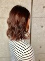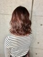 インナーカラーにオレンジ色が入ったふんわりボブ