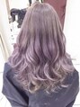 全頭ブリーチして嫌な赤味を消して人気のオリジナルラベン ダーピンクカラーをのせます!赤味の全く無いブリーチなら ではの透明感のあるグレーカラーを実現します!ブリーチの 回数は髪質により個人差がありますのでご相談くださいね! !