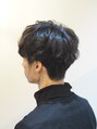 刈り上げ以外の部分全体に動きを出しやすいようにランダムにパーマをかけ、オシャレなスタイル