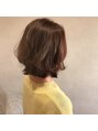 肩上の切りっぱなしボブに表面に入れたレイヤーでふんわり感を出した外ハネボブです。パツンとしたラインは残しながらもふんわり動きを出すことで透け感も出てやわらかい雰囲気になります。