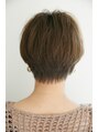 えりあし短め、前髪・トップ長めのハンサムショートスタイルです。