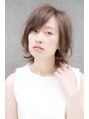柔らかなアンニュイカールが大人かわいいエアリーショート☆小顔に見せてくれる斜めバングと似合わせカットでシルエット美人に。トリートメントパーマでルーズな動きを出せば簡単スタイリングでOK!イノセントなベージュカラーとの相性◎