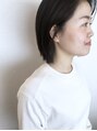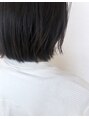 前髪をかきあげて、後ろはブツ切り感を残してセミウェットに仕上げました。オールバックな黒髪とウェットな質感がこなれた雰囲気に。