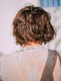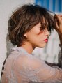 ショートボブベースのすたいるに、大きいカールのパーマをかけてエッジがきいたスタイルです☆カラーはナチュラルでありつつカールの動きが分かりやすい明るすぎないカラーですこしオレンジ系のカラー☆重ためがすきな方にもオススメです!