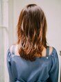 鎖骨より少し短めに切ったスタイル!段はあまり入れずワンレングスのベースにトップだけレイヤーをいれました!バングは束感が出やすいようにシースルーバングに!可愛い印象にするために目の高さくらいからゆるくパーマをかけたモテスタイル