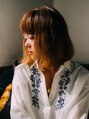 肩レングスで切りっぱなしなボブ。無造作なパッツンなワンレングスラインがランダムなハネ感とナチュラルな質感を出しています。重たくなりがちなAラインのワンレングスボブも透明感のある明るめカラーにすれば毛先の動きがでて◎