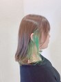 ブリーチ一回でも出来る!グリーンのインナーカラーポイントカラーかわいさ抜群!少し入れるだけでアクセントになります!!髪は切りたくないけどイメチェンしたい方!是非オススメです!!!