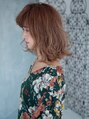ハイトーンミディアムスタイルです。ブリーチをして上からピンクベージュカラーをオン!Aラインの重ためフォルムに表面は遊びのレイヤーを入れてフリンジのように動きのあるスタイルに。前髪は斜めに分けて隙間を作ると大人の雰囲気に。