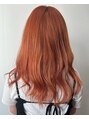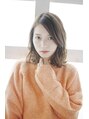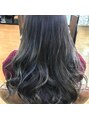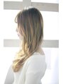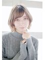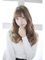 重めにつくられた前髪に無造作なカールスタイルです。ハイトーンのカラーがより柔らかさを出します。