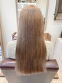 毛先はブリーチ毛、根元の伸びている所だけブリーチした後にミルクティーをのせました。