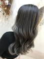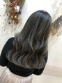透け感たっぷりなシアグレージュ*全体にハイライトを細くたっぷり入れて、暗いのに柔らかい雰囲気に。ブリーチ必須のカラーになります。