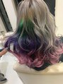ブリーチ2回必須。インナーカラーを今回は5色以上組み合わせてレインボーカラーにしました。色の配置や組み合わせで色んなイメージを作れ、自分だけのカラーが表現出来ます。周りと差をつけたい時にオススメです