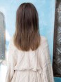 ラフなストレートが印象的なミディアムスタイル! 飾らないミディアムスタイル。顔まわりにレイヤーを入れることにより首から鎖骨にかけて空間ができ重たさを感じさせないカットになってます!透明感のあるカラーでさらにおしゃれに!