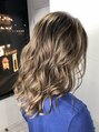 細かいハイライトを沢山入れてつくるブロンドヘアーです。根元が伸びても目立ちづらいですし、頭皮の負担もなく、更に前頭ブリーチするよりも立体感がでてお洒落です。外国の方々のブロンドヘアーは基本的にこのやり方です!私にお任せください♪