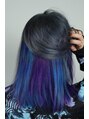 インナーカラーに人気の青と紫をいれて、ベースはシルバーカラーに!