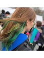 ベースは細かくハイライトを入れたベージュカラー。インナーに黄色と緑のカラフルカラー☆☆