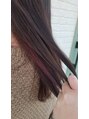 ブリーチで所々抜いてからのオンカラーです。ブリーチの部分はバイオレット系のカラーバターを、他はグレー系にしました。顔周りはウルフっぽく切り込んであるのでブリーチの入れ方も色々楽しめます^^