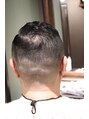 TOPのボリュームが気になる方におすすめのスタイル。パーマをかけ、横はフェード(刈り上げのグラデーション)にすることで、TOPに高さを出しつつデザイン性も高まります。