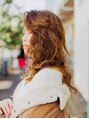 外国人のような無造作なパーマスタイルです。動きがでやすいように全体にレイヤーが入っています。カラーは透け感があるベージュ系で柔らかい雰囲気をだしています。