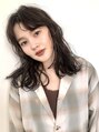 モカベージュカラーの柔らかセミディ。暗くても透明感のあるベージュと動きのあるスタイリングで女性らしく。