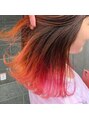 - 上の部分は地毛の色を生かして毛先のみブリーチ後オンバター