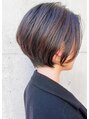 私のお客様のリアルスタイル。襟足短めに、丸みを強調させた前下がりショートカットです。前髪長めで女性らしさUP!トレンドですが、女性らしさが大事なので丸みを協調★襟足の短さがポイント♪(ショートカット/ショートボブ/髪質改善/縮毛矯正/)