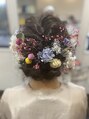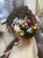 成人式用編み込みアレンジです。ドライフラワーを飾りで使用しました。