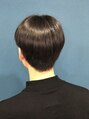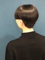 カットラインはハッキリ見えている。全くすいていないヘアスタイル。個性派!