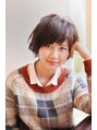 暗めのショートでも動きがでて思わず髪の毛を触りたくなっちゃうようなスタイルをつくってみました。柔らかい動きがでるように大きめのパーマかけて女性らしさを演出カットはマッシュルームベースで丸さがでるようにしています。