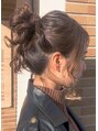 お団子アレンジスタイルです。首元がスッキリさせて、柔らかく、ゆるーくアレンジしています