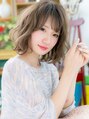 【スタイルは★ブックマーク★が便利】斜めバングをくせ毛風ゆらぎカールでラブガーリーに仕上げたふわミディ/前下がりで輪郭をカモフラージュして小顔に/厚めバングやジグザグバングで個性的にイメチェンも◎/耳かけしても大人かわいい/学生/20代/30代/40代