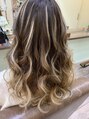 - バレイヤージュ グラデーション ハイライト ローライト ロング 外国人風