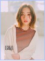 鎖骨にあたって外側に跳ねるのを計算して作ってあるスタイルになります!!ぱっつんボブとは違い、毛先は内側に入るようにカットをし自然に外にハネるのが今どき☆カラーリングは、落ち着いたいろのベージュブラウンで!