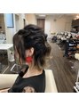 グラデーションカラーを活かしたヘアアレンジ顔周りは髪を下ろして動かすことで華やかさをアップさせました。