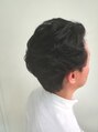 直毛な方に、セットで動きがつけやすいようなパーマを施しています。前髪を上げてセットしたい方にもパーマは有効です。カラーはナチュラルブラックで白髪をカバーしています。