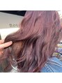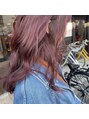 新しいカラー剤のティントバーのピンクをベースに少しラベンダーをmixして赤に振りすぎないピンクに^^インナーにランダムにハイライトを入れて、顔周りに動きを◎
