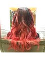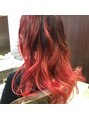 ワンブリーチからのオンカラー 今回は、バレイヤージュでレッドレッドに。