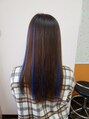 自毛にシールエクステポイントメッシュで、ブルーを6枚付けさせていただきました♪ブルーのメッシュを自毛でするのは大変だけど、エクステなら、自毛も痛めす、簡単です(^o^)