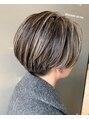 襟足を刈りあげる事でスッキリと見えるショートスタイル!カラーは全体に細かいブリーチハイライトを入れてコントラストを出るようなメッシュスタイルに^ ^ショートスタイルやハイライトカラーお任せ下さい!ライフスタイル合ったスタイル提案します!