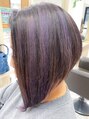 後ろをすっきりさせた前下がりボブに、サイドの毛先をブリーチと表面にウィービングをして、パープルをオンカラー。