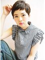 短いのに女性らしい、丸みのあるショートヘアです。前髪は短めでザクザク流れやすく、パーマで立体感を出して束っぽくスタイリング。カラーは地毛に近いくらい暗め、光があたると透明感を感じるアッシュグレイジュ。