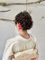 前髪をスッキリあげたルーズシニヨンスタイルです。