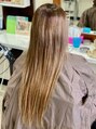 毛先のお色に合わせてロングヘアーに。コテで巻いても少なく感じないように耳から下は太めにつけさせていただきました。