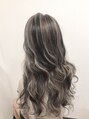 BLACK × SILVER!!!がっつり太めなハイライトが入ってるるかと思いますが実はそうではなく、ほぼ2トーンカラーと言ってはいいくらいブラックとシルバーが半々で入っており、染めるラインをずらすことによってハイライトやローライト風に見えるスタイル♪