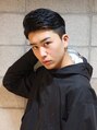 スタイリング剤をなで付けるだけの簡単セット!!トップにボリュームを残したオールバックスタイルにサイドをスッキリさせ清潔感を演出しています。