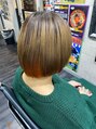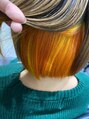 上はそのままということで、インナーのみをブリーチした後、オレンジと黄色にカラーいたしました!カットはショートボブに仕上げました。
